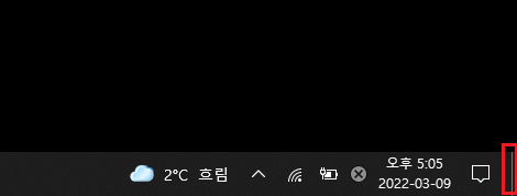 실행 중인 모든 프로그램을 최소화 하려면 마우스로 화면 좌측하단(아래 붉은 네모 표시)의 버튼은 누르면 최소화 된다.