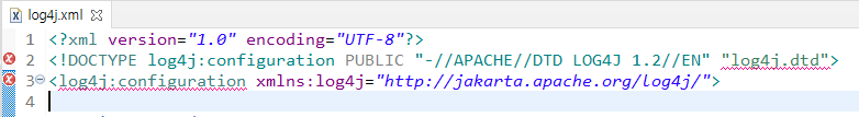 log4j.dtd 지정된 파일을 찾을 수 없습니다.