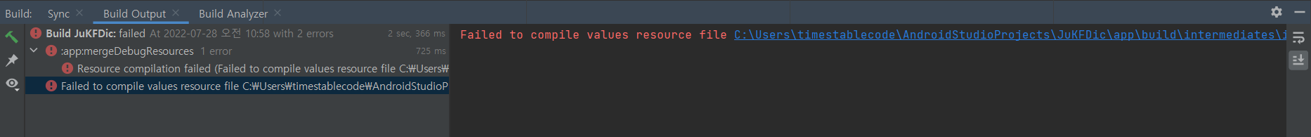 Failed to compile values resource file C:\Users\...